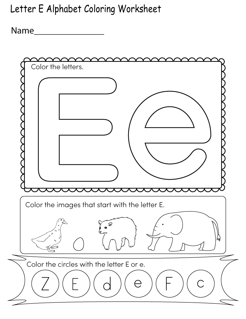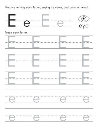 Download Printable Letter E Worksheets for Children to improve their essential early writing and reading skills for practice.