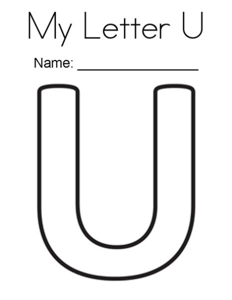 Download Printable U sound handwriting alphabet Letter U Worksheets with lower and upper case practice for children.